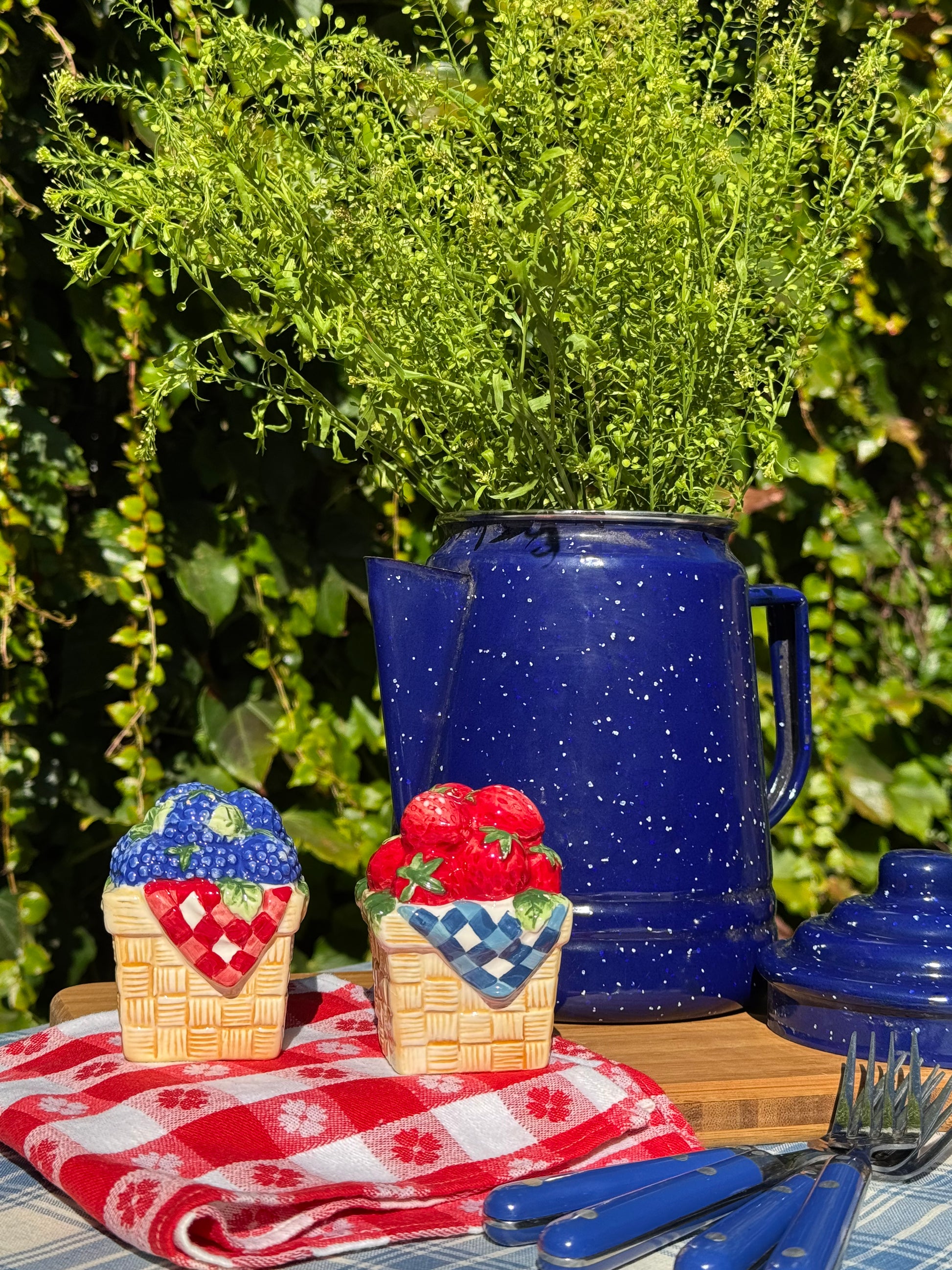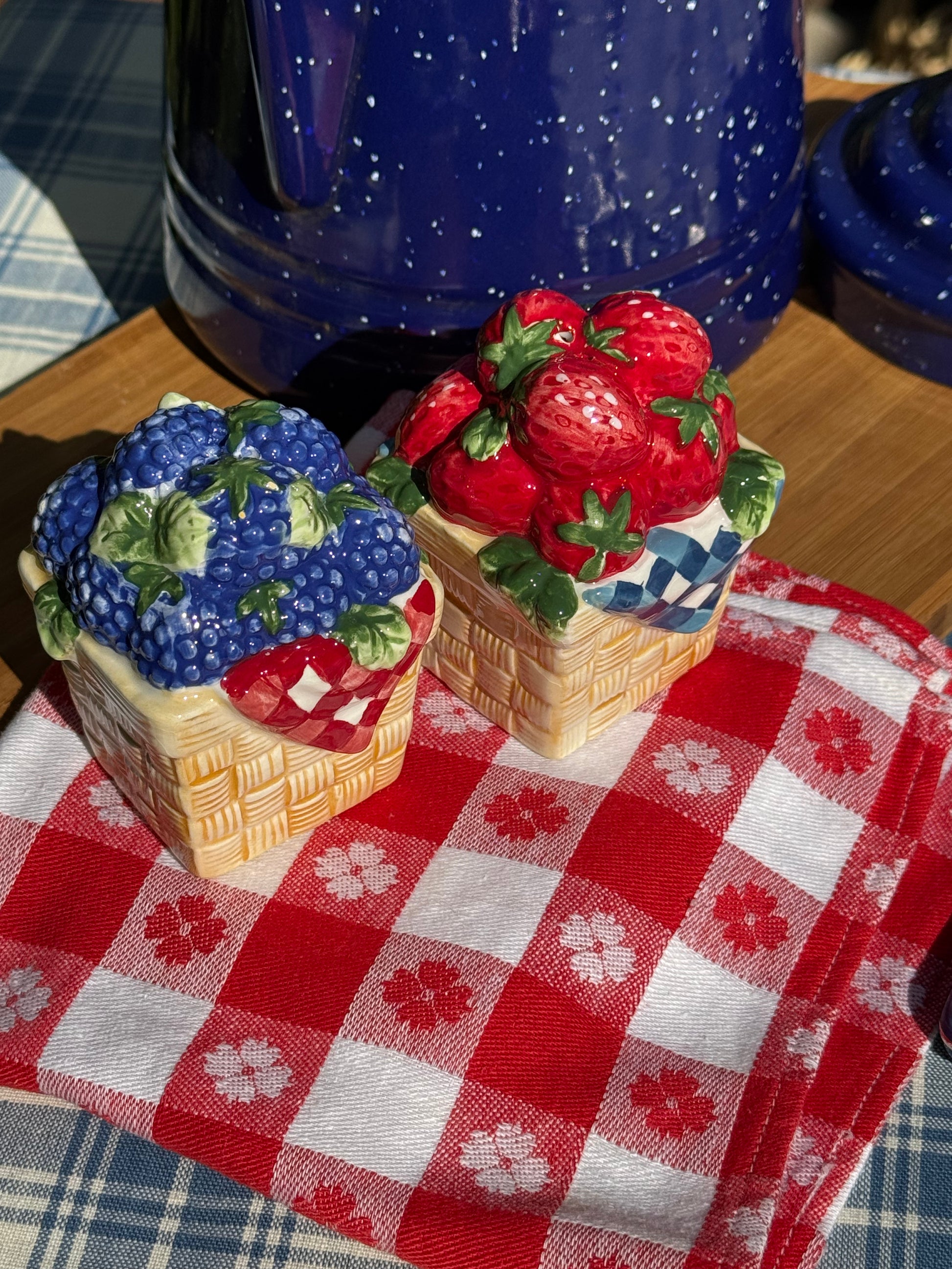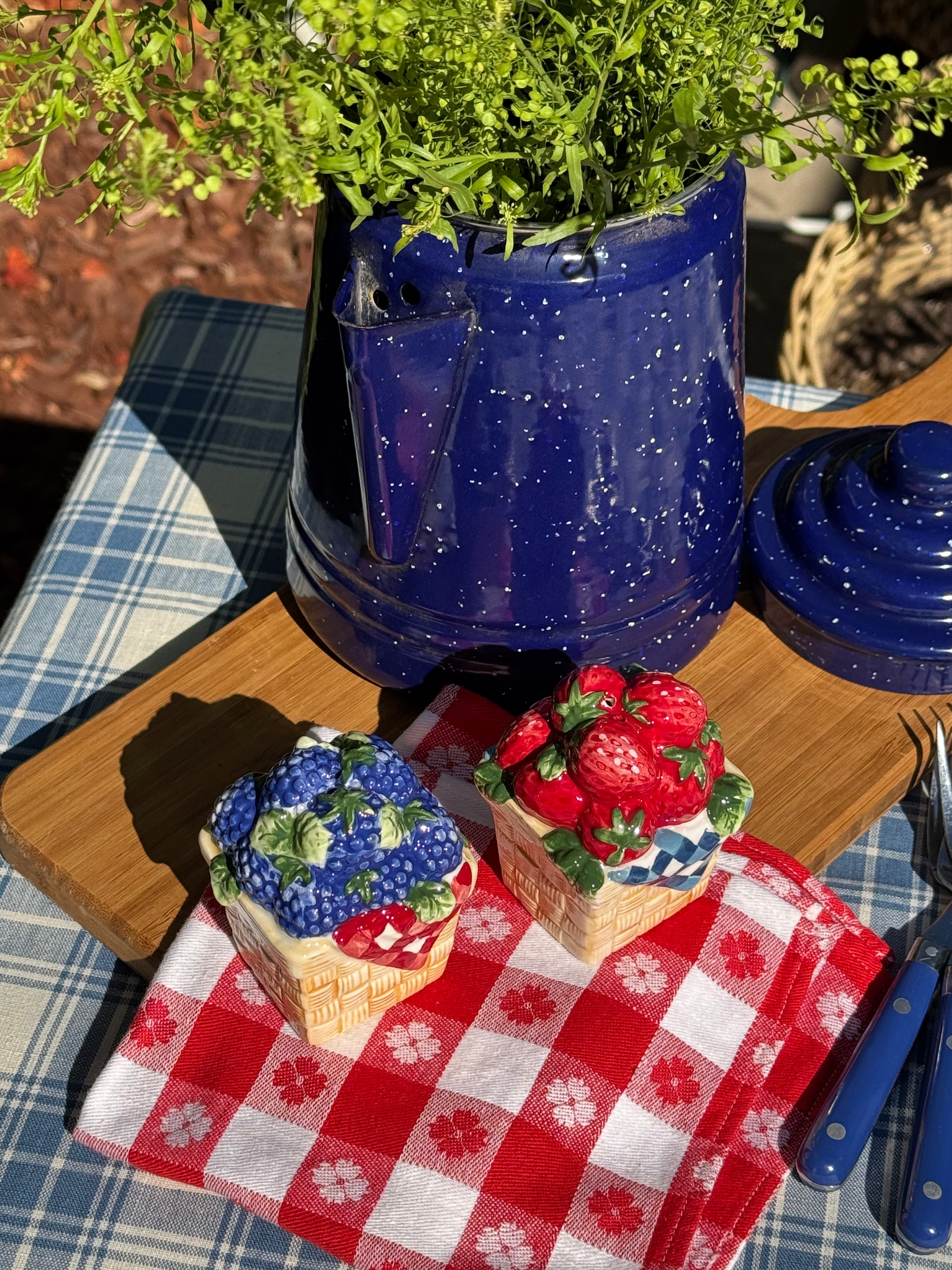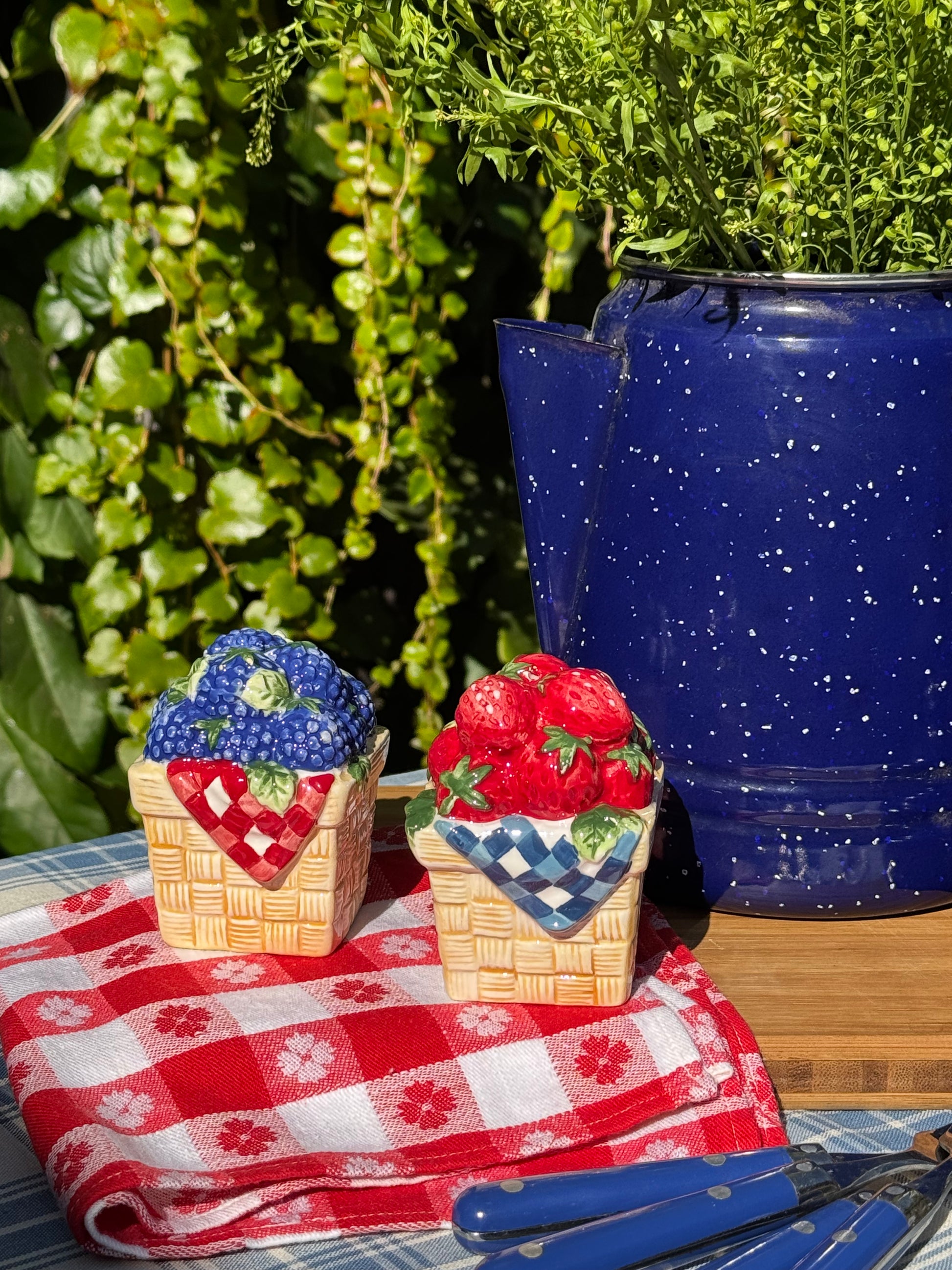 Add a dash of sweetness to your dining table with these ceramic Berry Basket Salt & Pepper Shakers! Perfect for brightening up your tabletop with a touch of cuteness!