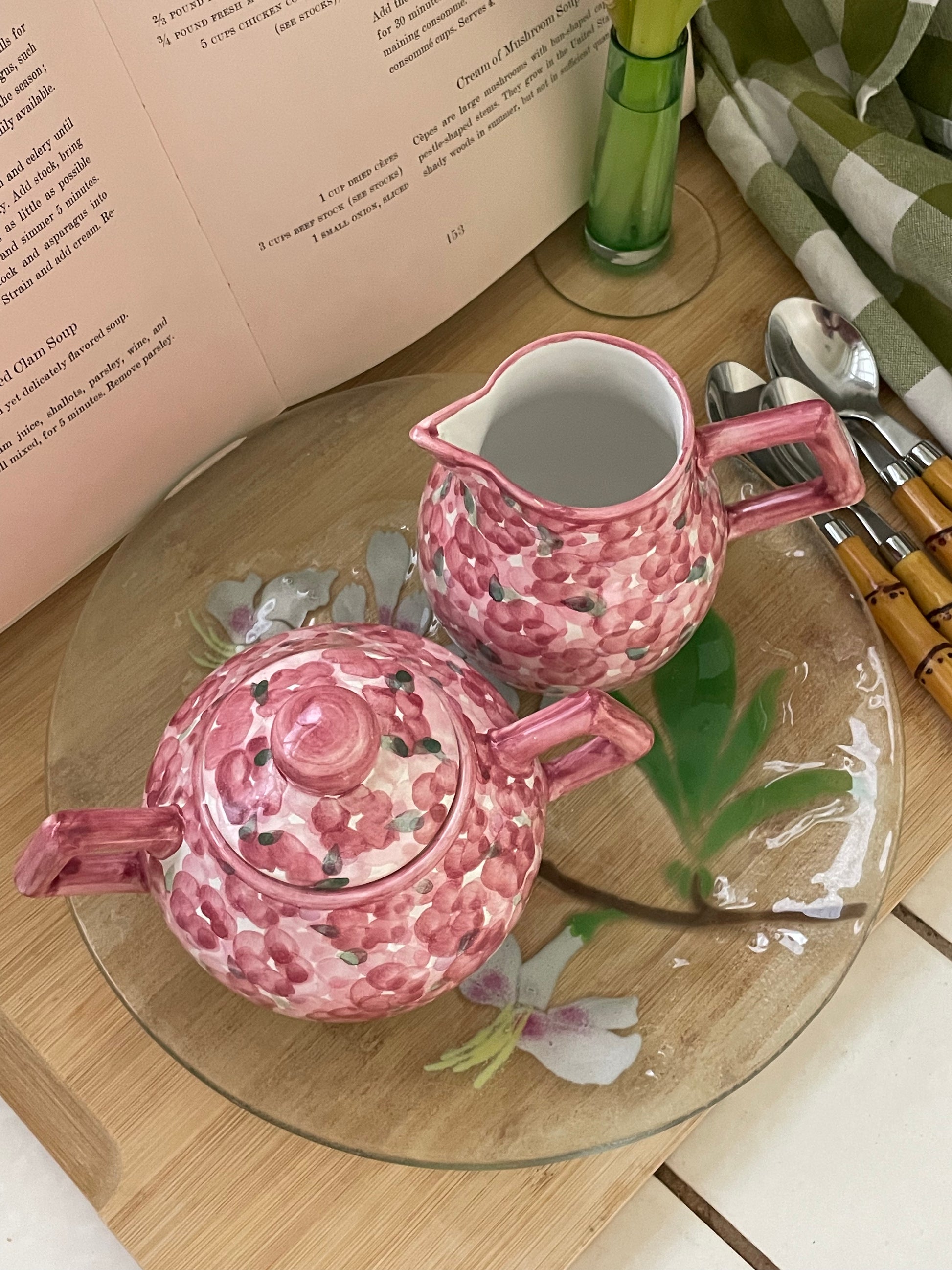 Get your tea party ready with Cherry Lane Cream & Sugar set! This charming set features a playful pink floral design and is hand-painted in Portugal.