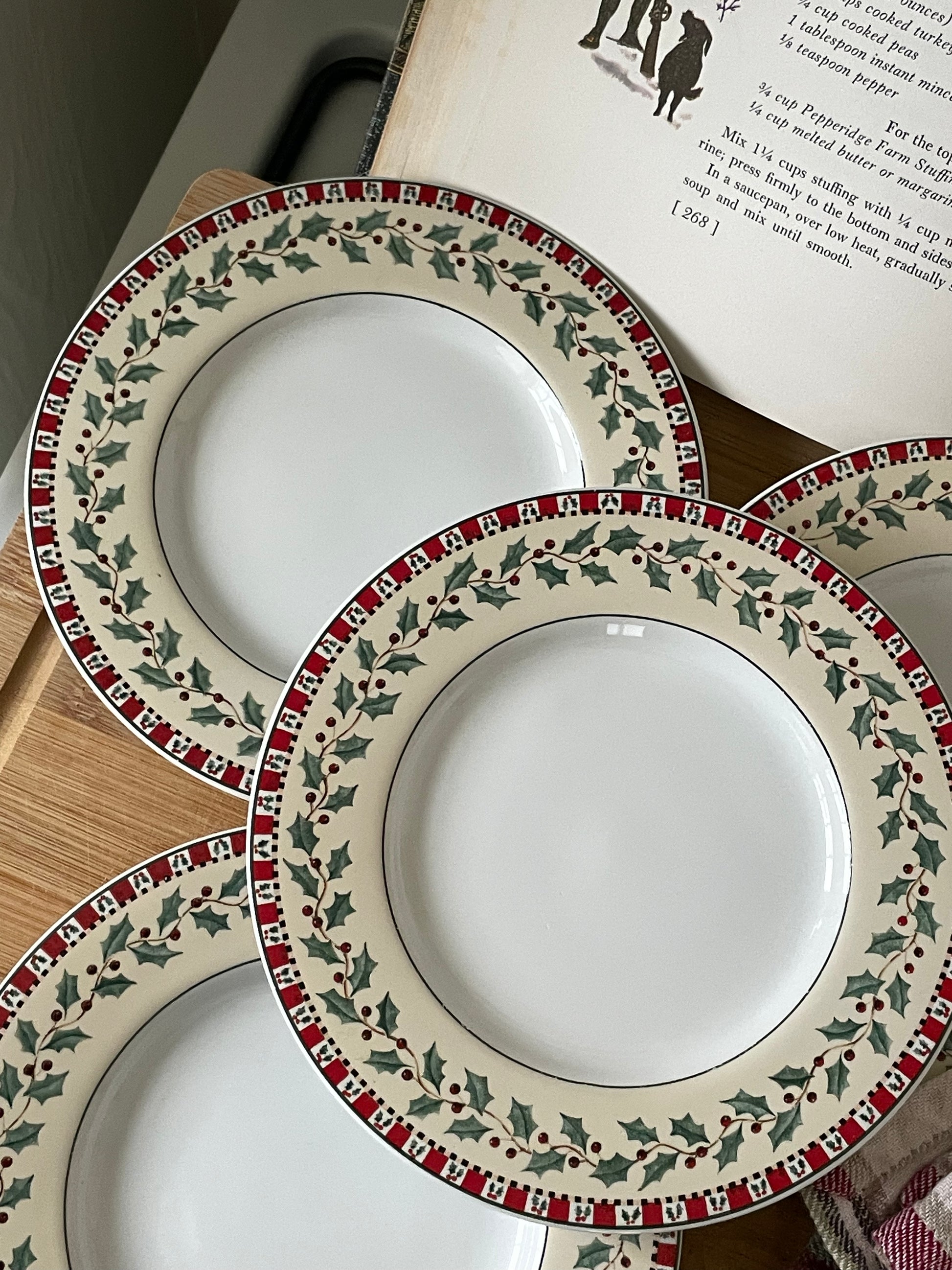 The most adorable set of holly-adorned treat plates! From the Sakura 'Christmas Bears' collection, 1998 Debbie Mumm.