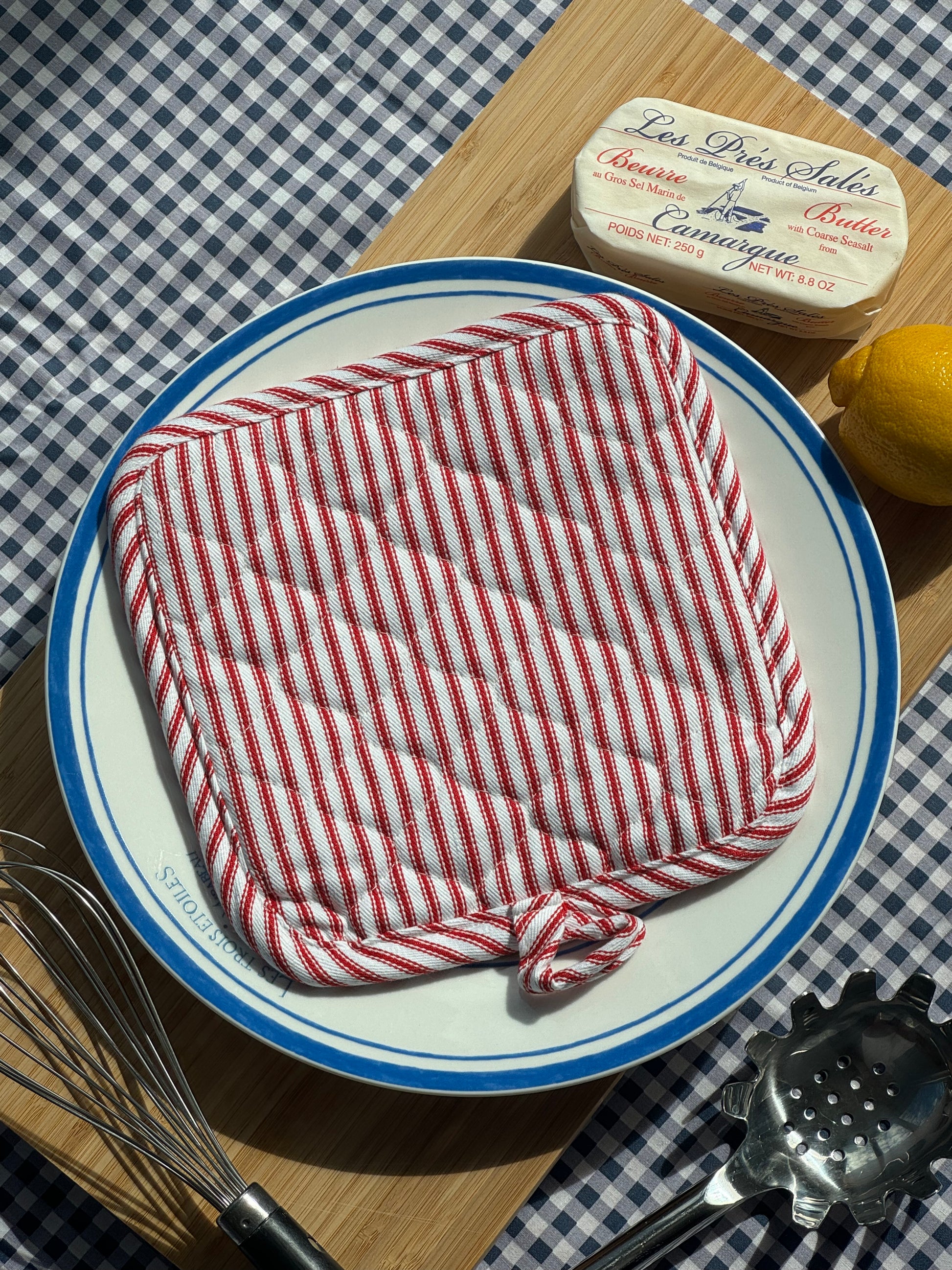 The most adorable red & white striped pot holder! This Deckhand Pot Holder adds the cutest, nautical vibe to your countertop! The perfect addition to your everyday kitchen lineup!