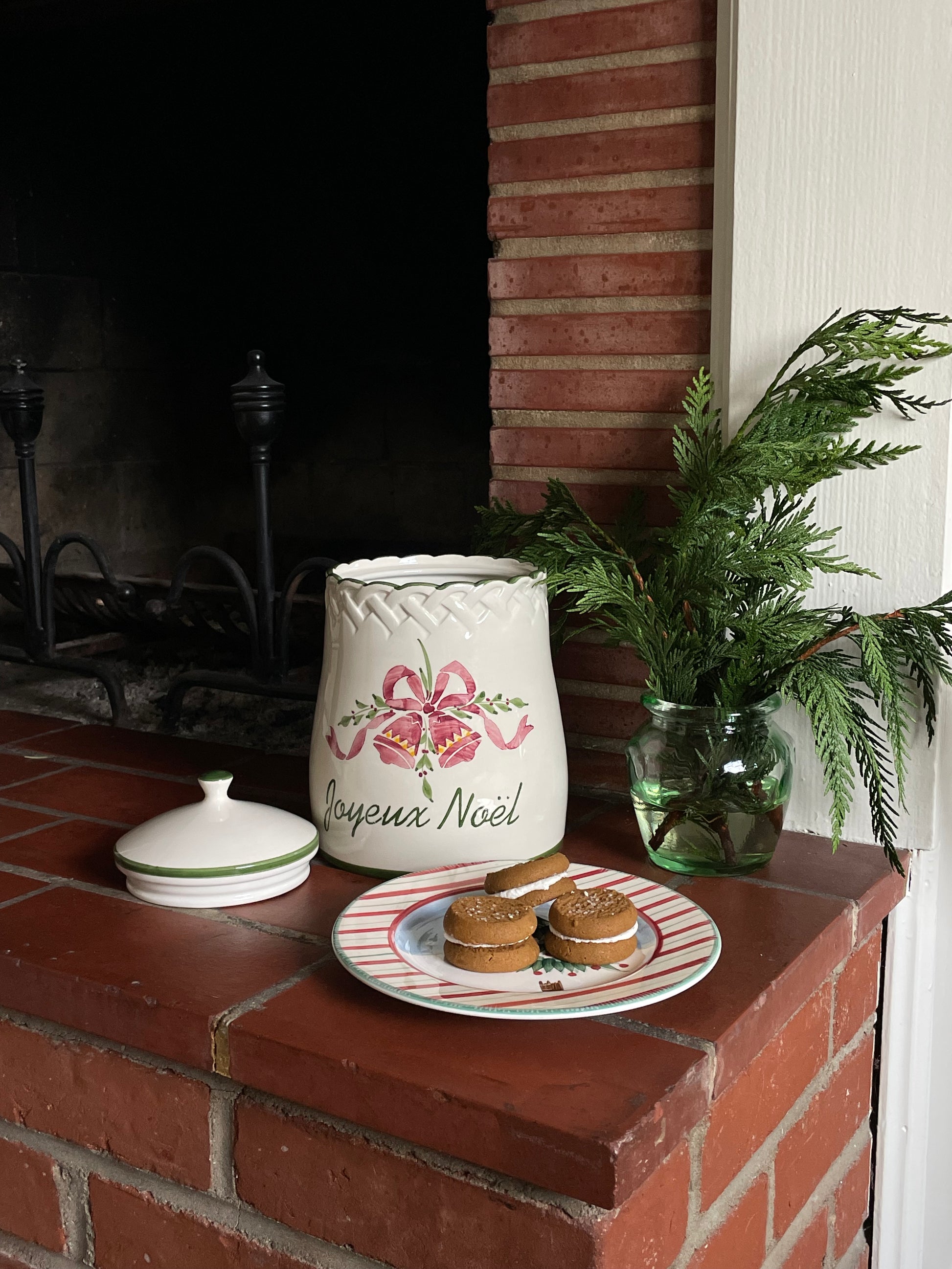 Celebrate the season with the Joyeux Noël Cookie Jar from Casafina. Hand-painted and made in the USA, this charming ceramic jar is perfect for holding holiday treats or adding a cheerful touch to your countertop. A timeless accent that blends whimsy and craftsmanship.