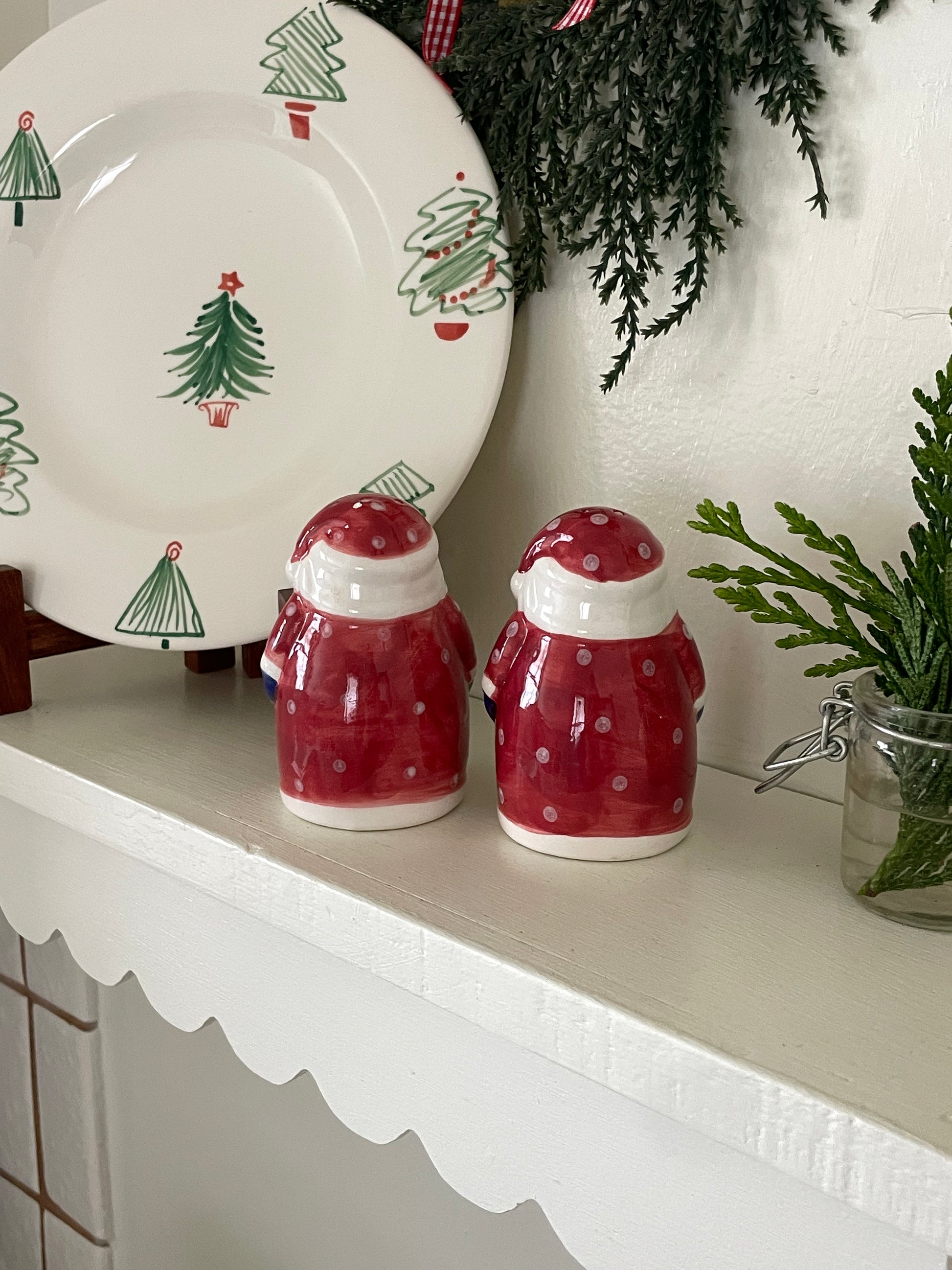 Ho ho ho! The cutest pair of salt & pepper shakers featuring jolly Santa himself. The perfect touch of vintage holiday charm for your kitchen or table.