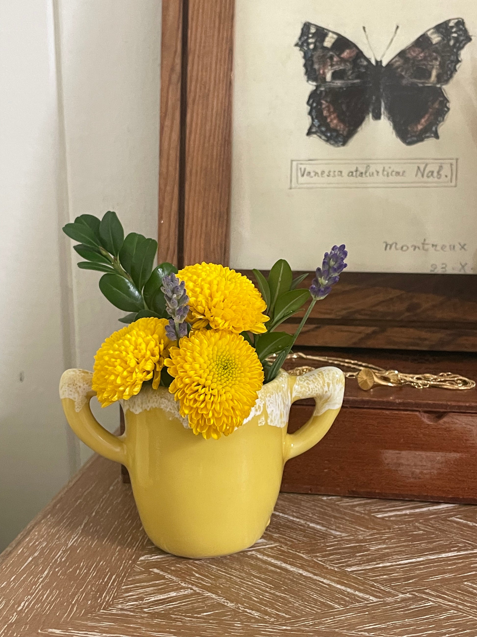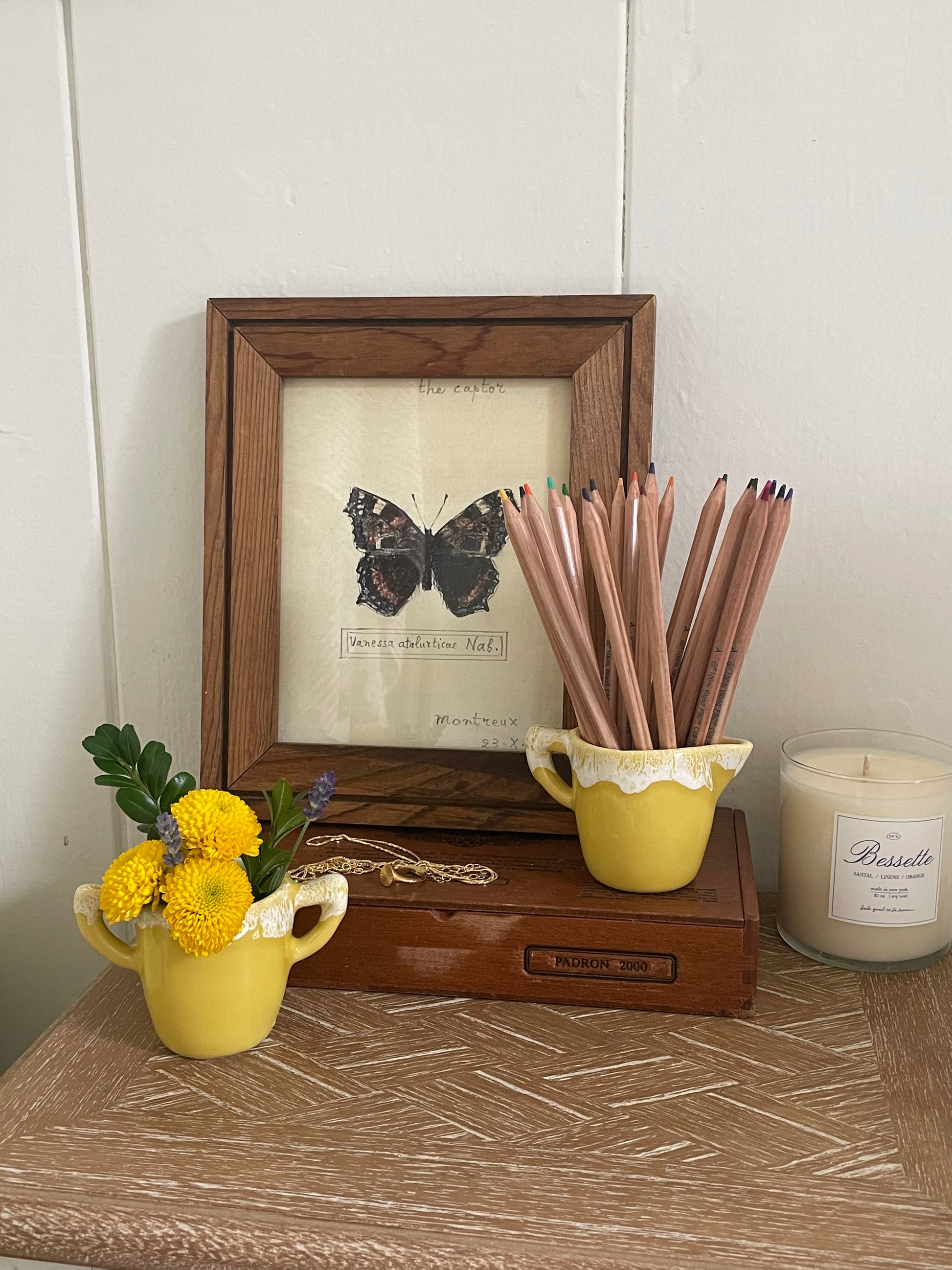 Bring the sunshine to any table with our Lake Day Mini Pitchers! This cheerful yellow ceramic pitcher is set apart with its unique white glazed design on the top.
