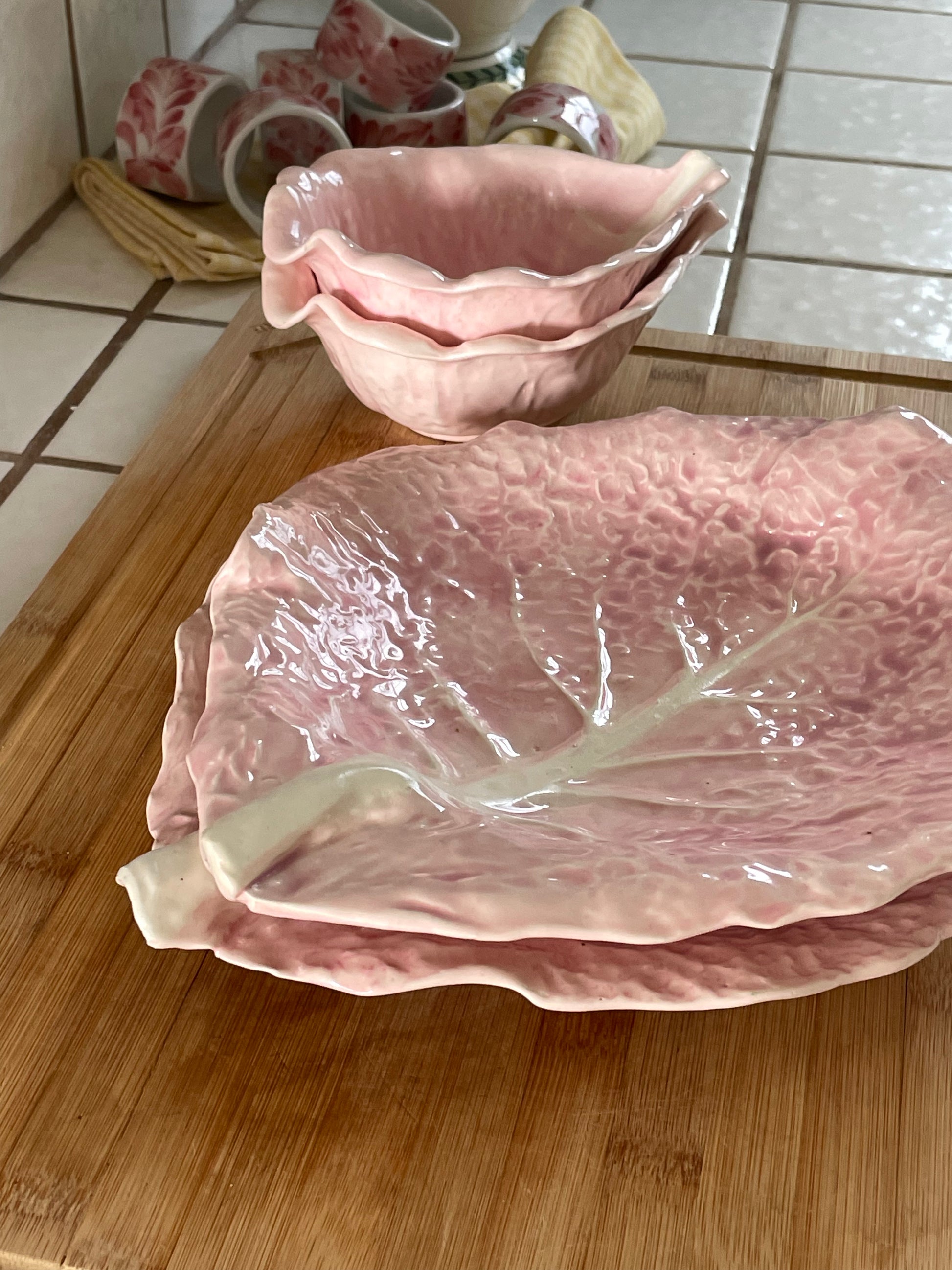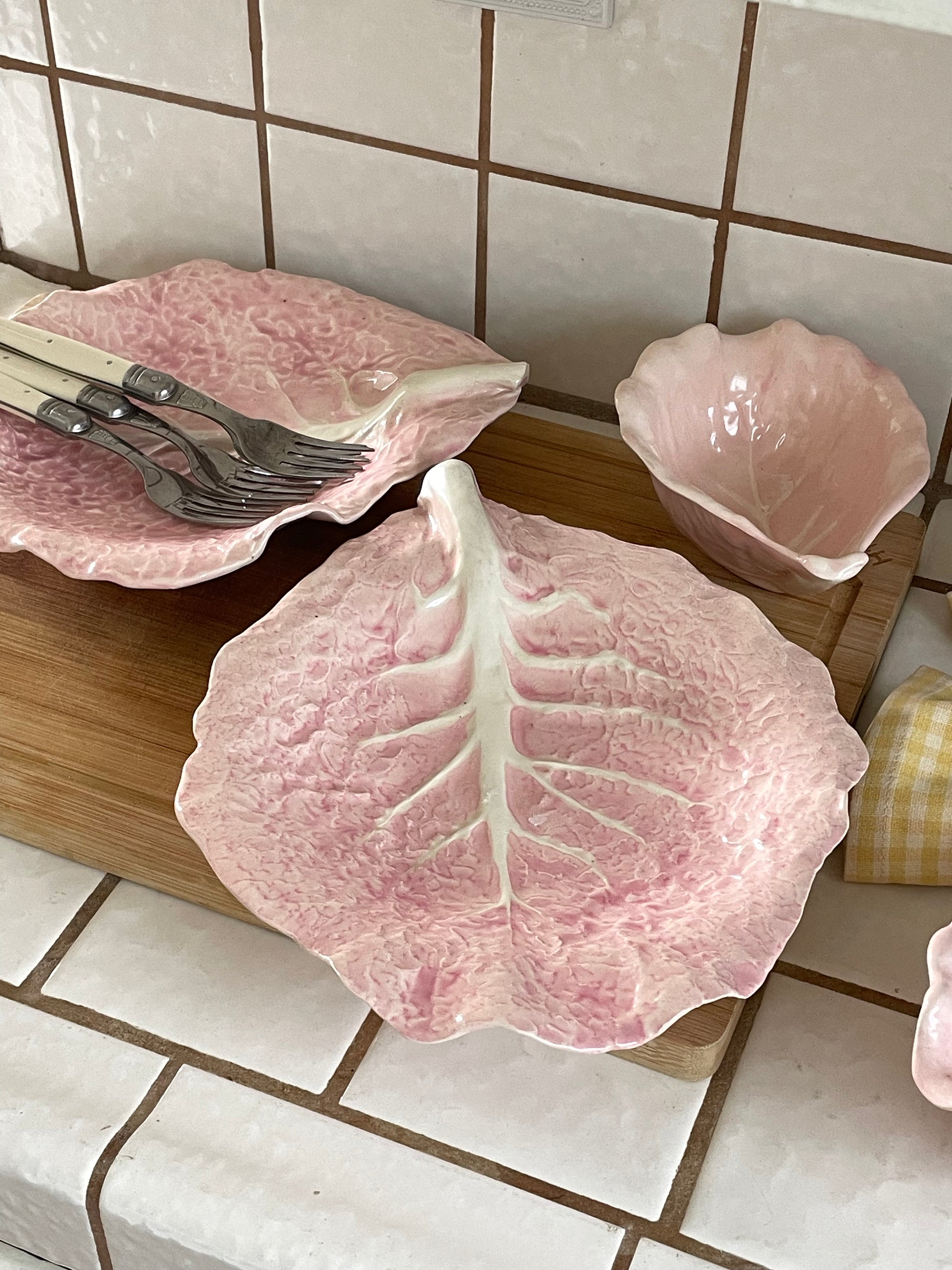 A charming, hand-made set with 2 plates and 2 bowls in the sweetest pink cabbage design. Playful, garden-inspired, and perfect for adding a little whimsy to your table.