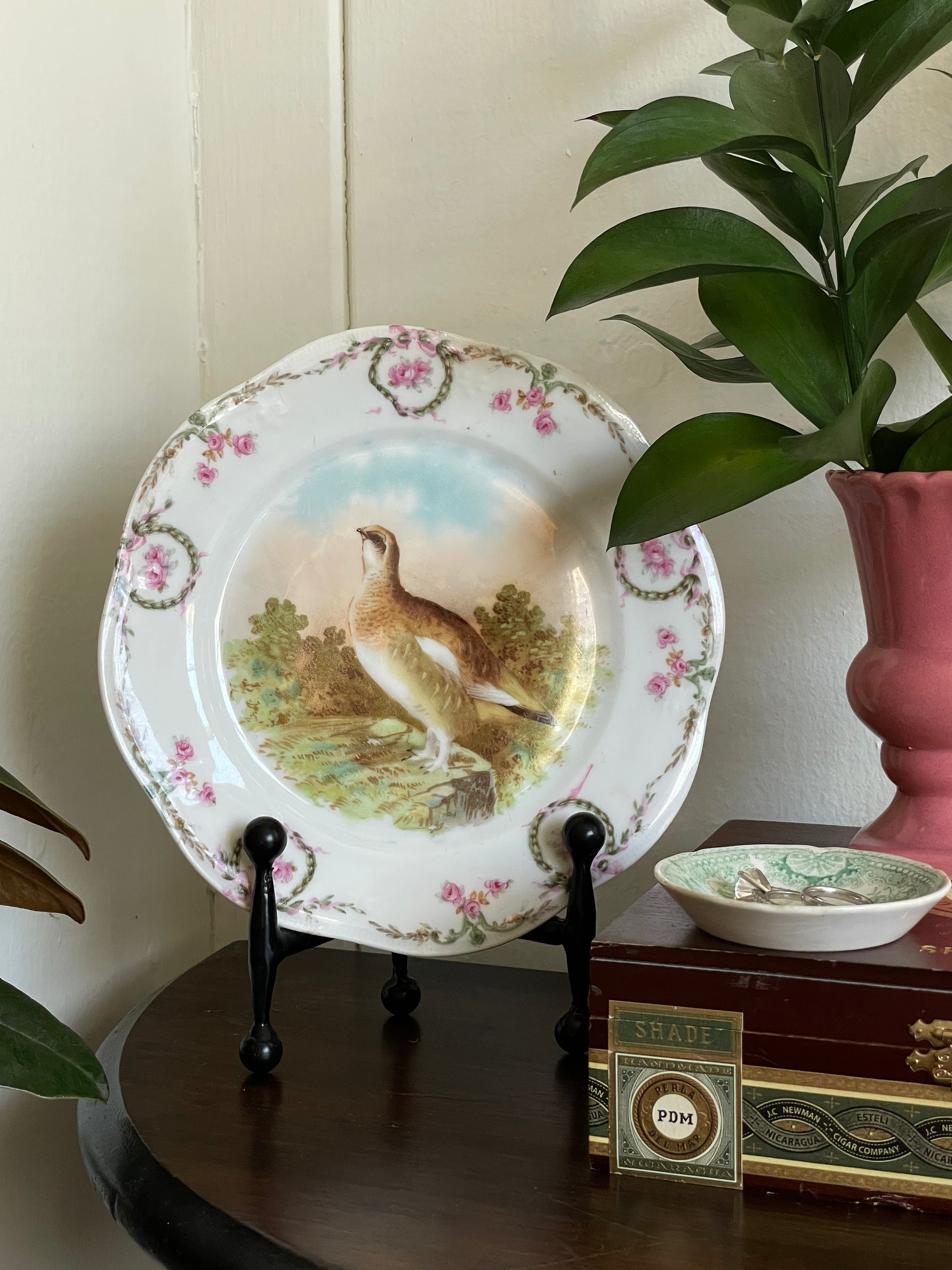 Vintage 1920's Z.S. & Co Bavaria Mignon game bird decorative plate adorned with a pink rose garland rim. For you or the vintage collector in your life!