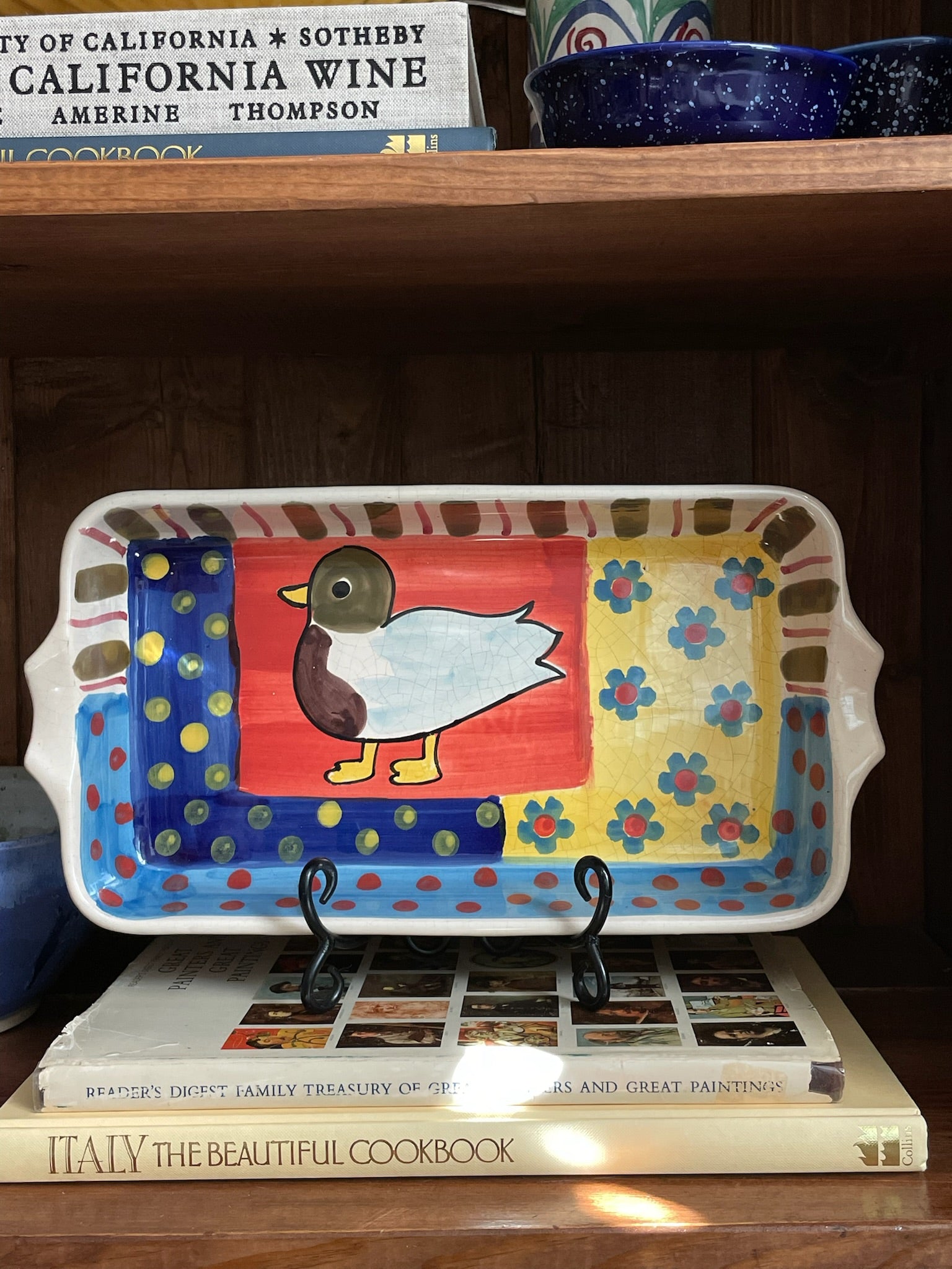 Add a splash of charm to your table with the Clover Hill Farm Decorative Dish. This vibrant, colorful dish features a playful duck design surrounded by lively patterns, making it both adorable and eye-catching.
