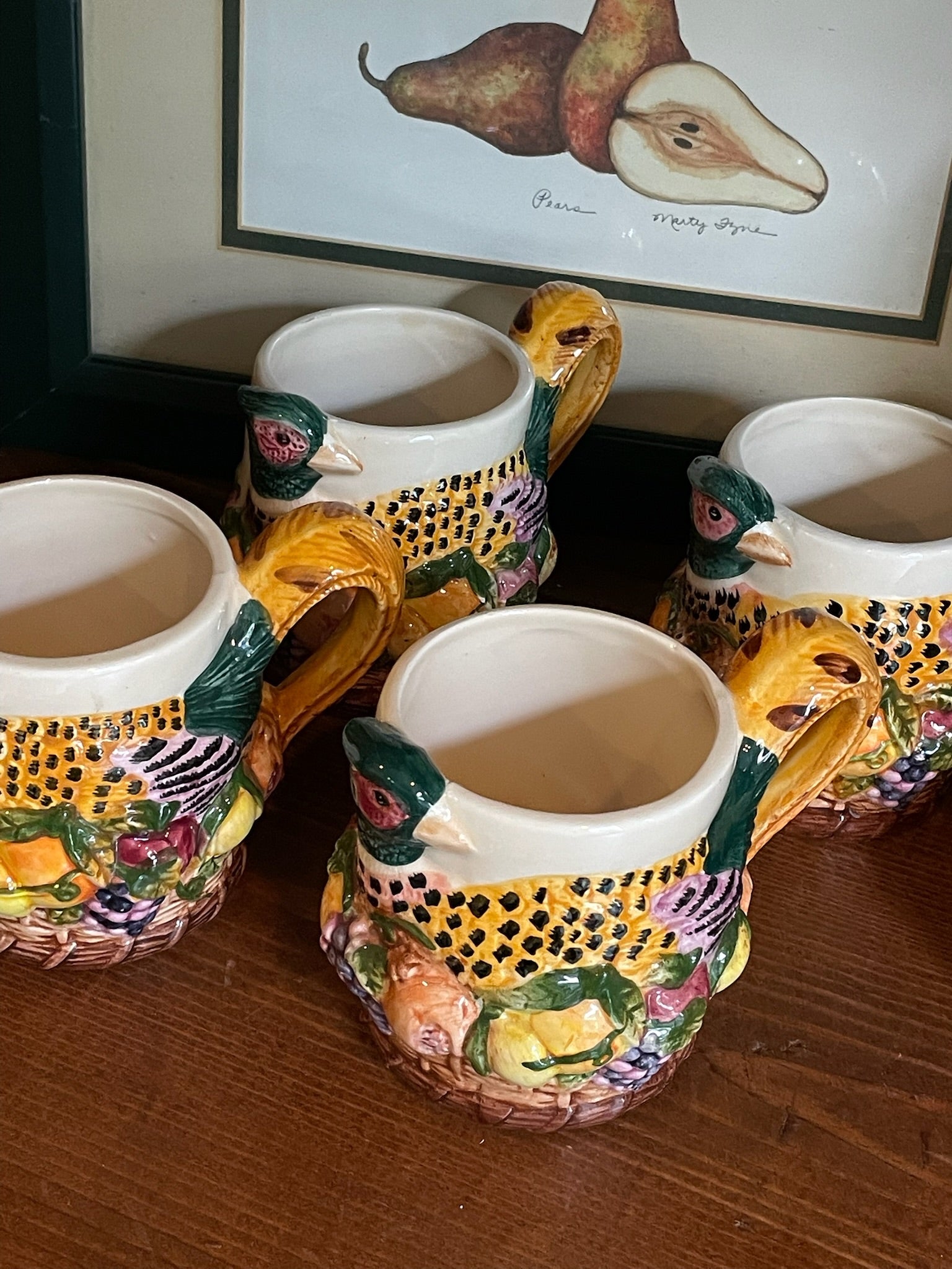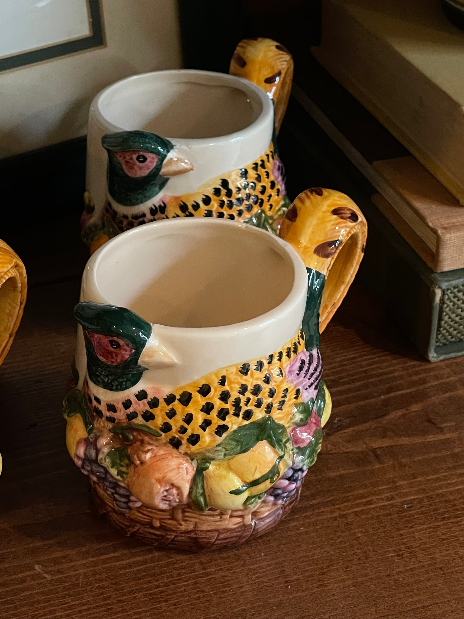 The coziest set of 4 mugs featuring a beautiful pheasant design and Fall fruits and vegetables. Perfect for the cozy Autumn months!