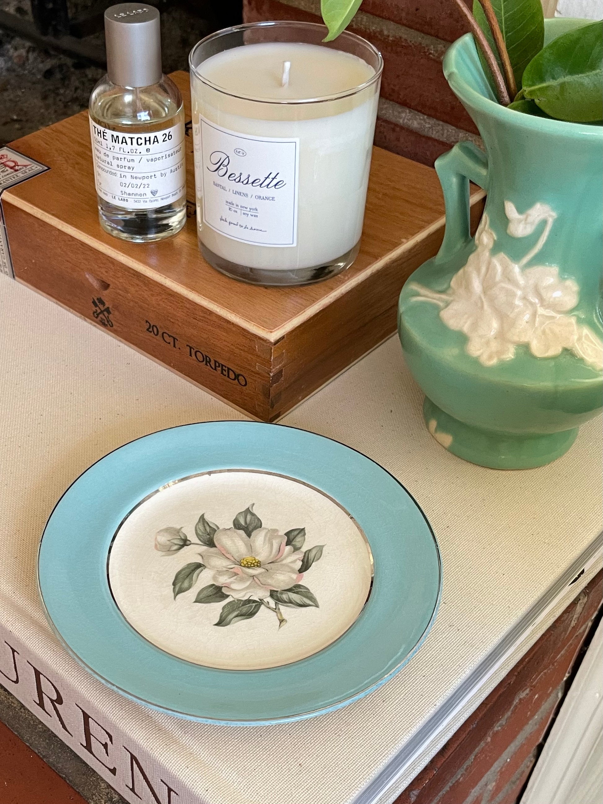 The most beautiful vintage trinket dish to add a pop of tropical teal to your bedside!