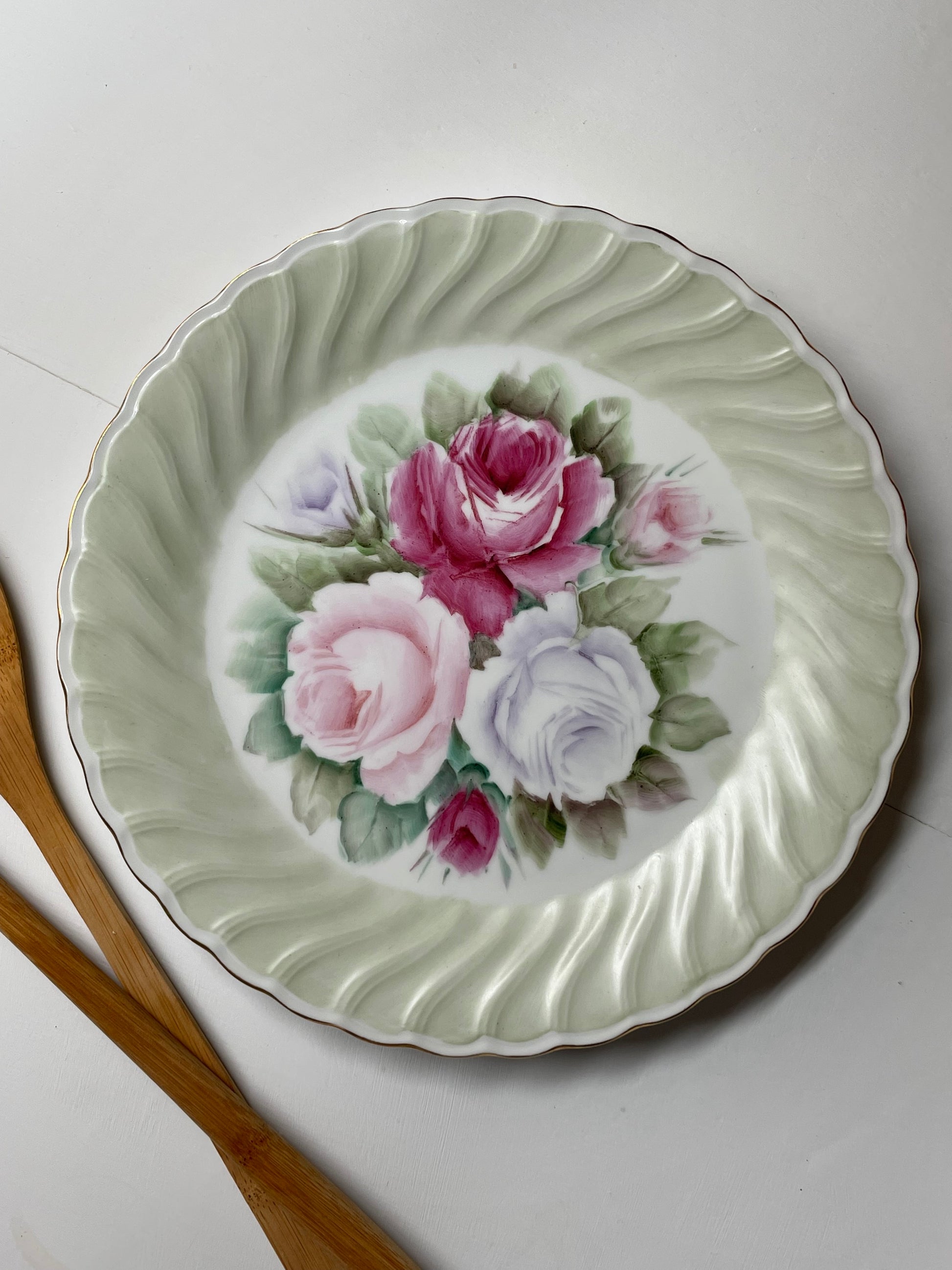 Who needs a bouquet of flowers when you can have the Irene Plate?! This one-of-a-kind plate was hand-painted in 1986 by the artist Irene H. Marshall. Featuring a fabulous floral bouquet with a green rim, this plate is like a work of art for your dinner table. Make every meal special with this stunning piece!