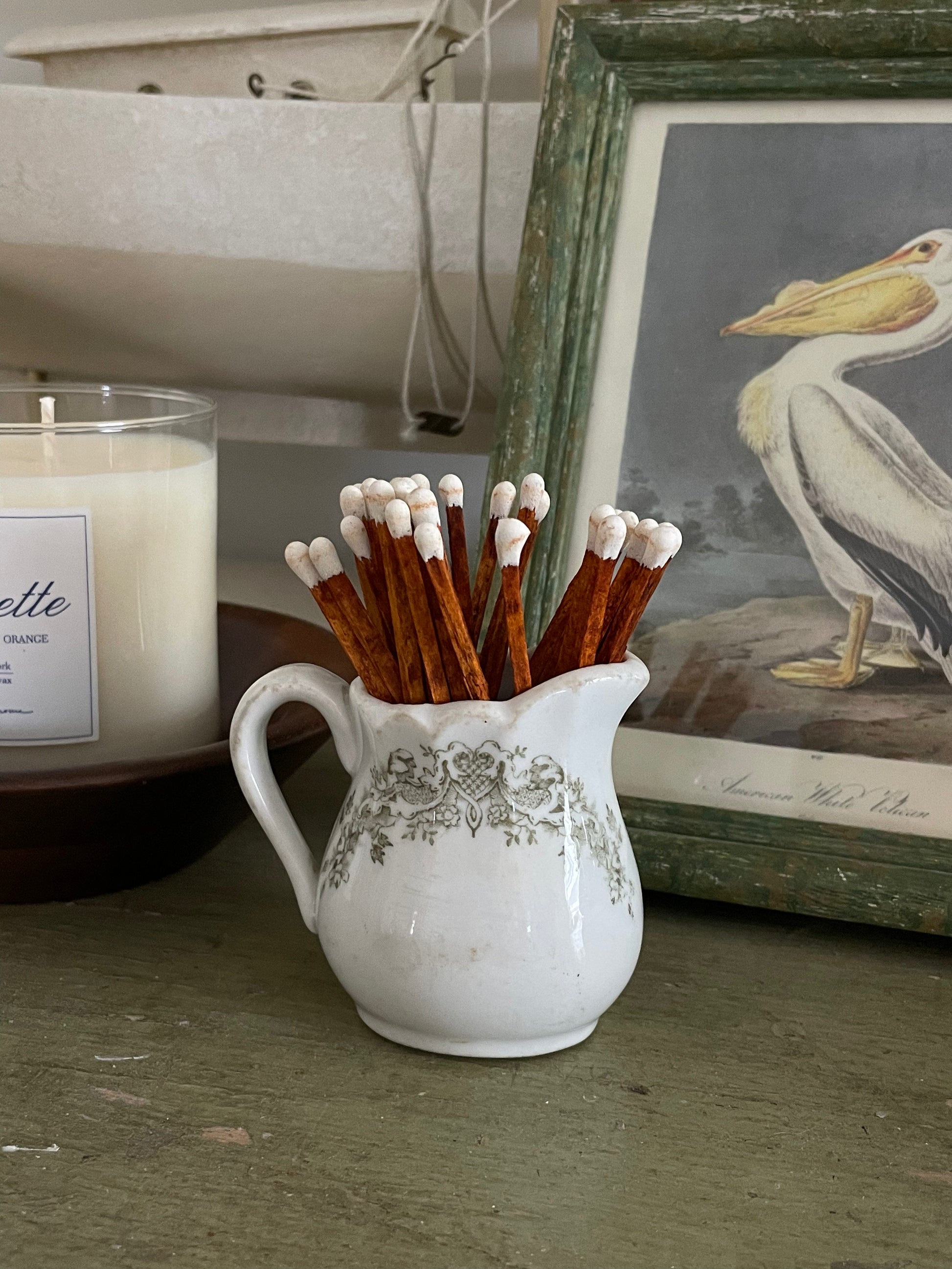 Matchstick holder: 2.5"H x 3.5"W (including handle)