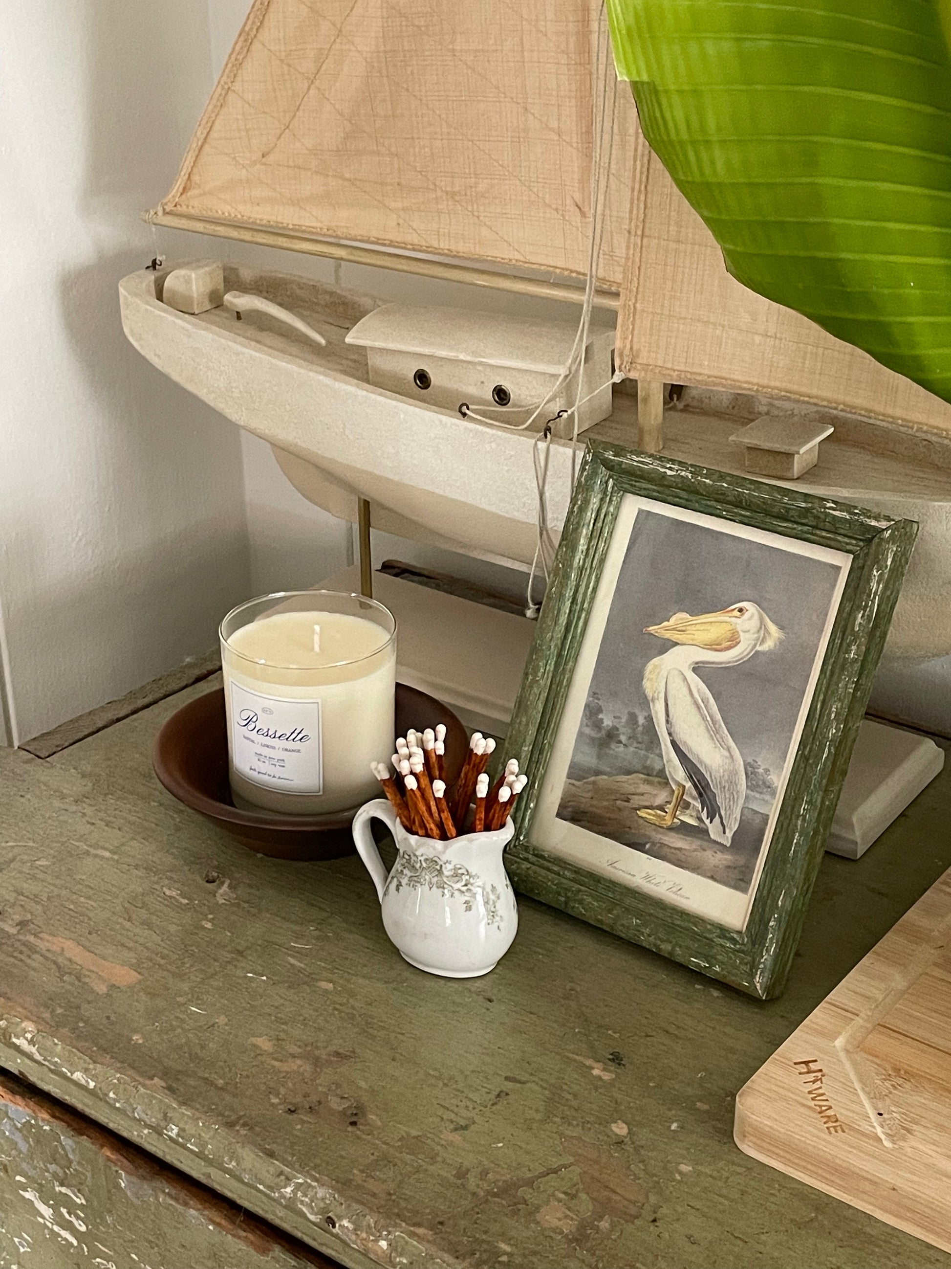 An adorable island-inspired wooden candle plate and ceramic matchstick holder duo!