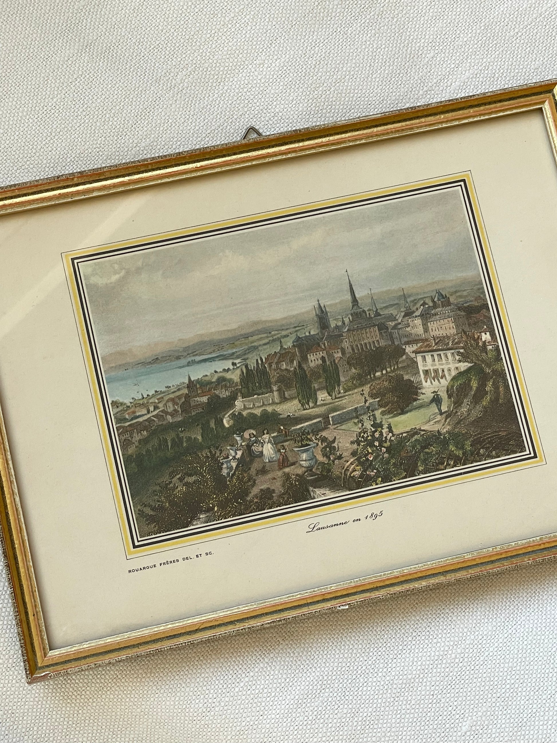 Experience the charm of 'Lausanne in 1895' with this elegantly framed art piece by Rouargue Frères. Capturing the historic beauty of the Swiss city along Lake Geneva’s northern shore, this artwork adds a refined, timeless touch to any space.