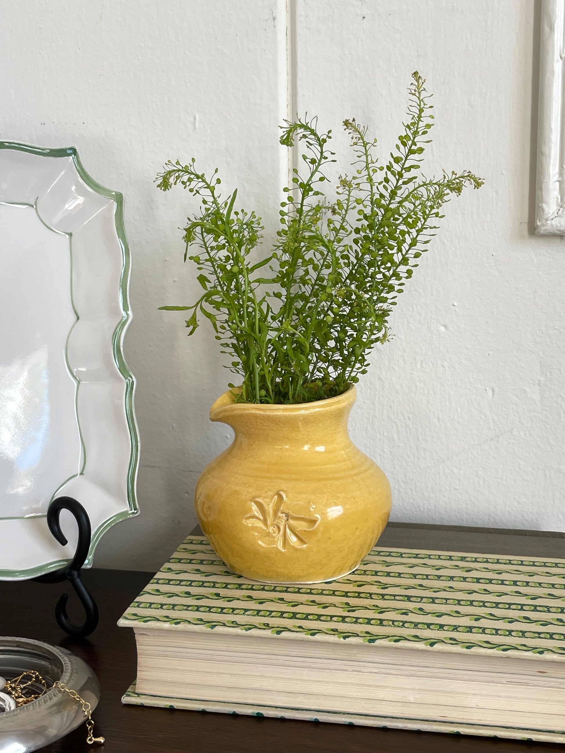 Handmade and hand-painted lemon yellow mini pitcher. As cute as can be!