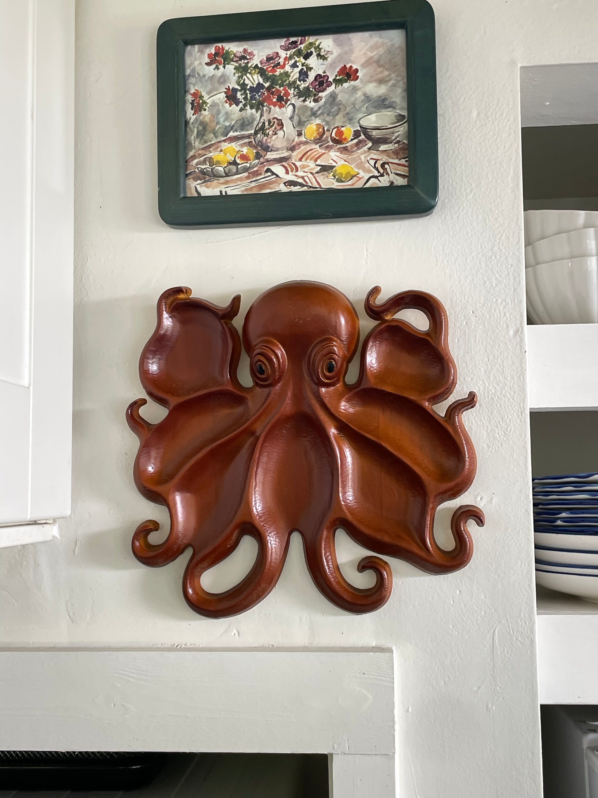 Octopus wooden wall art full of personality and coastal charm. A fun statement piece that adds whimsy and character to any wall.