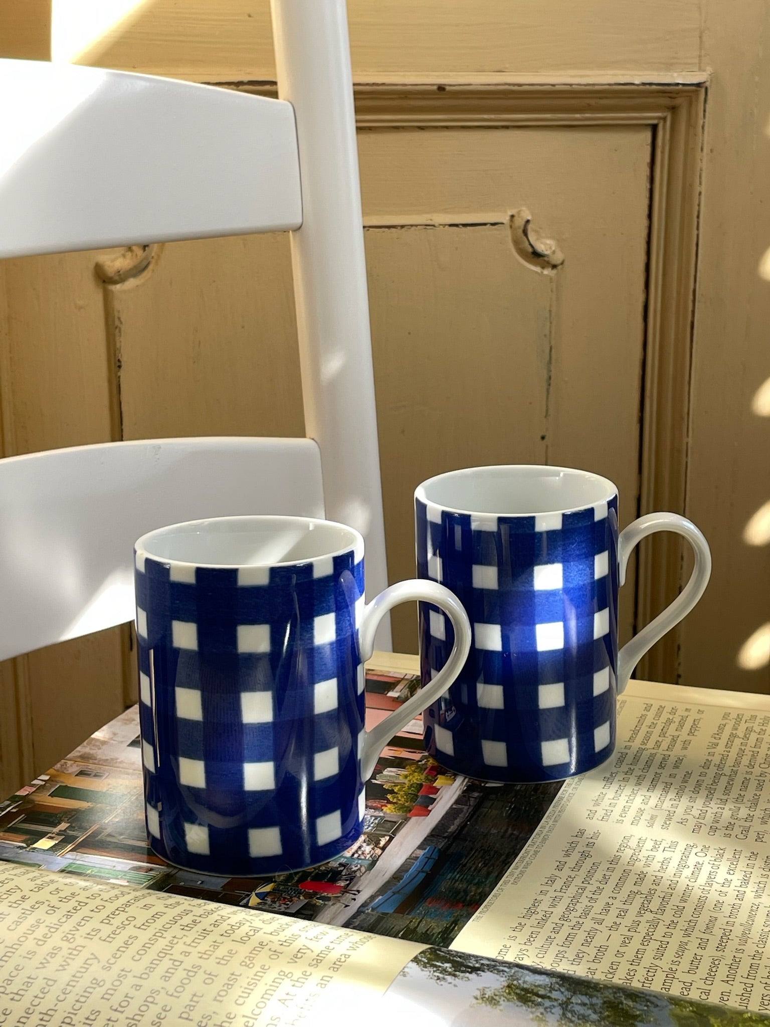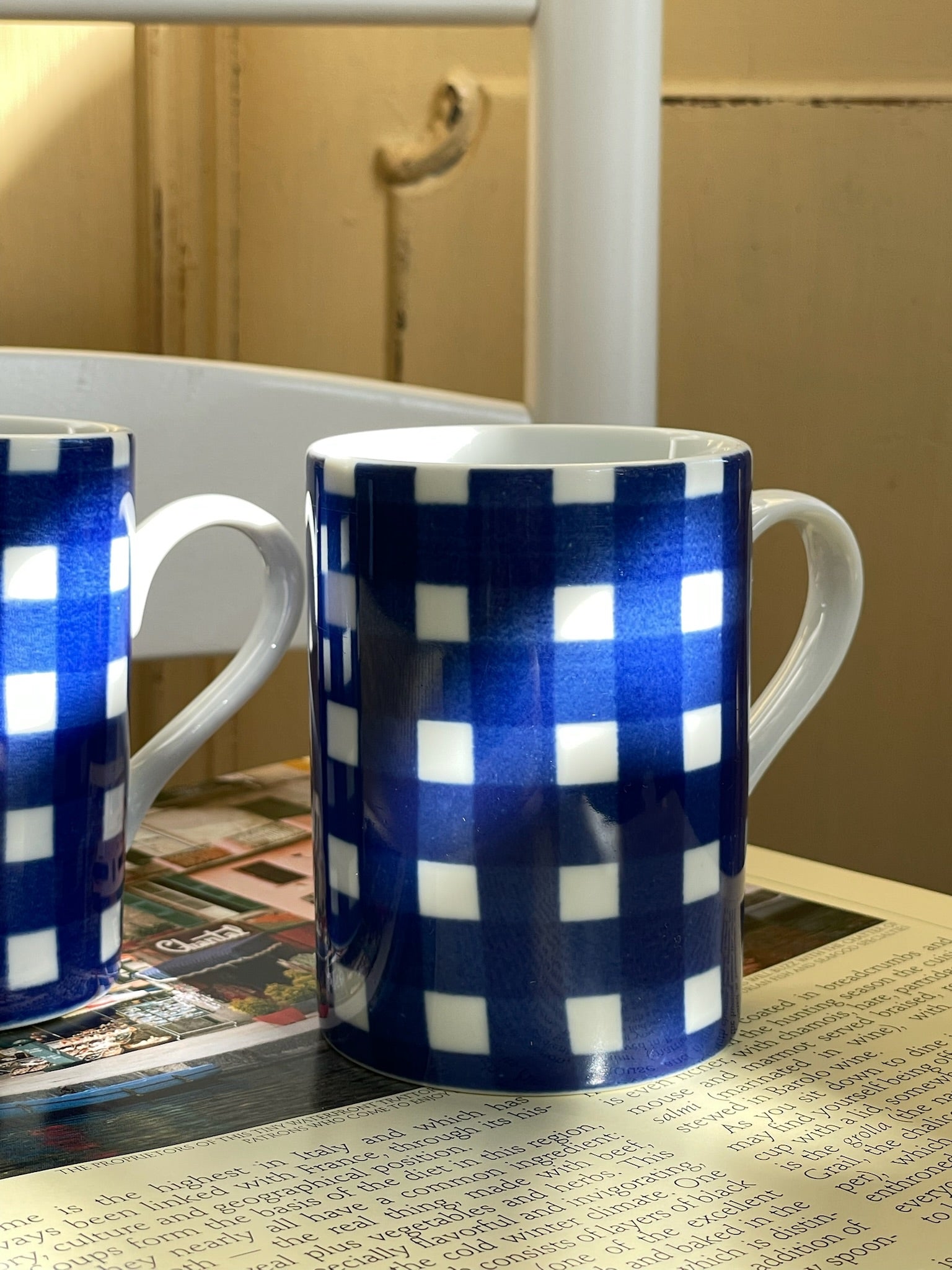 Add a splash of charm to your morning routine with the Southampton Mugs. Featuring a delightful blue gingham pattern, these vintage Eddie Bauer mugs bring a cozy, classic vibe to your coffee or tea time.